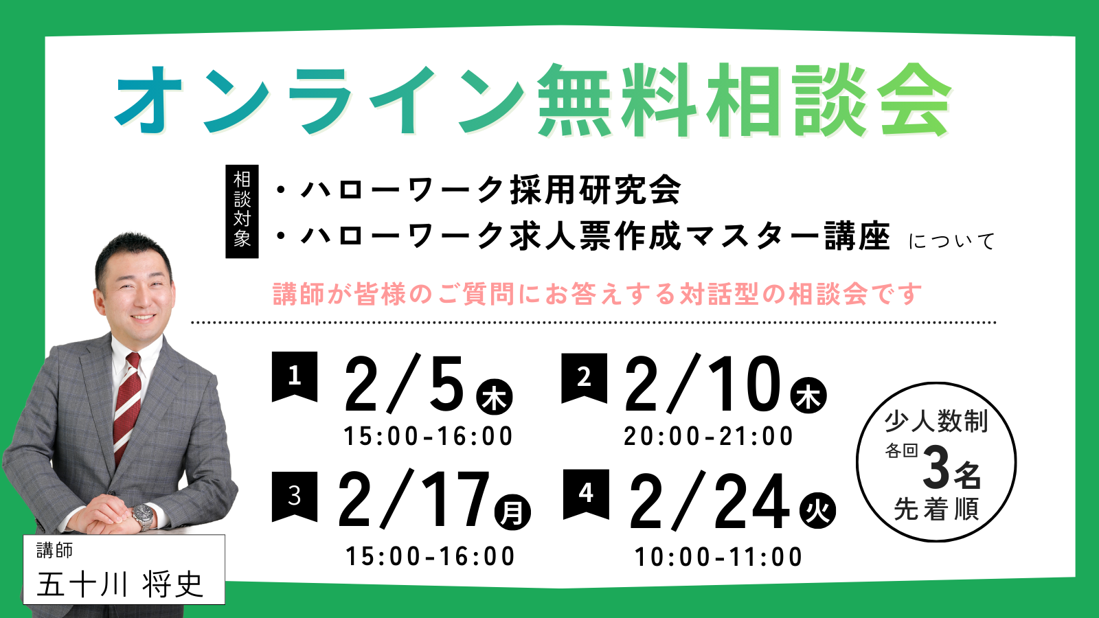 \NEW/ 2月の開催スケジュールを公開しました。 ハローワーク採用研究会・ハローワーク求人票作成マスター講座「オンライン無料相談会」 |