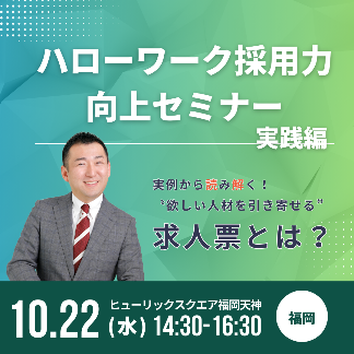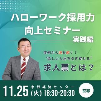 備考 | ・本セミナーは2時間のプログラムとなっており、受講料は7,700円(税込)です ・書籍「中小企業のためのハローワーク採用完全マニュアル」は、当日購入も可能です(事前予約制) ・開始15分前に開場いたします ・自社またはクライアント企業様の求人票で公開添削をご希望の方は、申込フォームにて求人票を添付ください (時間の都合上、希望される全ての企業様を添削することはできませんので予めご了承ください) |